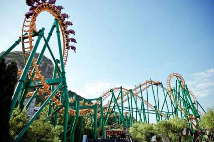 1、悬挂式过山车过山车横卧狮山脚下,国内首套引进,轨长787米,上下落差31米。掠山涉水,穿云过洞,乘坐小车倒挂轨道上,游客两脚悬空,两侧无挡,体验时速80公里的自由飞翔感觉,悬挂式的过山车惊险刺激程度为其他过山车之最。