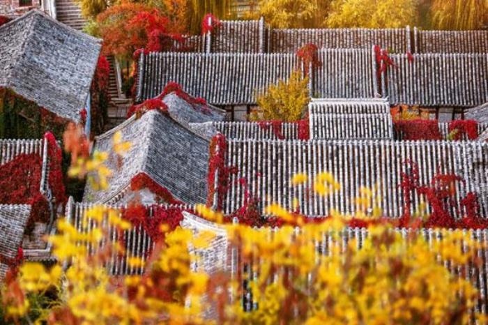 到了深秋,小镇的红叶便渐入佳境,呈现出“万山红遍,层林尽染”的壮丽景观。满眼的红叶爬上屋檐,爬满墙壁,爬向司马台长城,构成一个沉浸感十足的红叶世界。