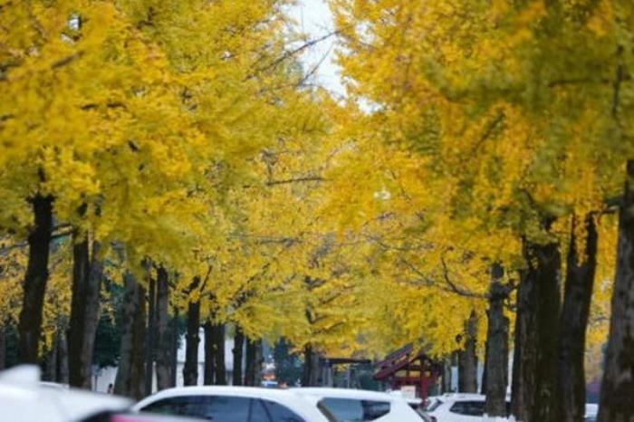 踩着满地金黄的落叶,行走在光影斑驳的树间,加上暖暖的阳光,抬头一看,就是忘不掉的美景。