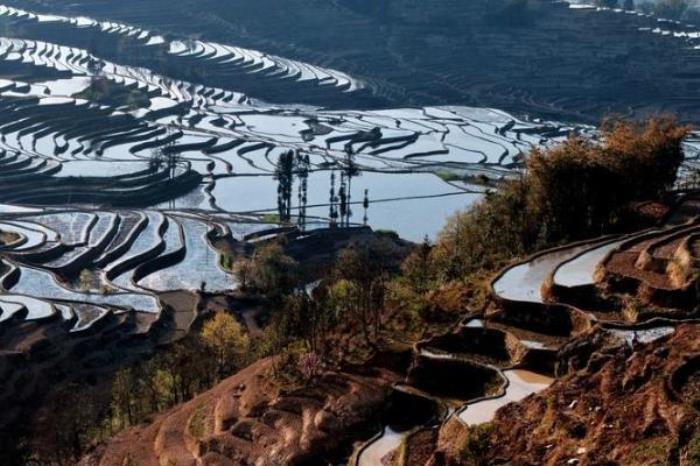 麻栗寨的梯田景区面积大,景观壮阔,层次感非常好,有一种线条美。麻栗寨的海拔为1100米,从这里延伸到海拔2000米的高山之巅,有连绵不断,成千上万层的梯田,把麻栗寨、坝达、上马点、全福庄等哈尼村寨托入云海之中。麻栗寨茶厂,是观赏梯田的绝佳地点,近万亩的梯田在阳光的照耀下,放着粼粼的波光,令人眼花缭乱。