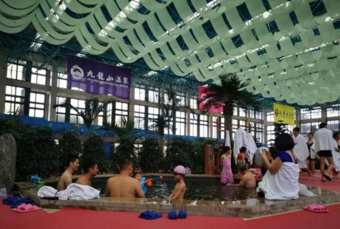 九龙山温泉养生区——坐落于九龙山脚下,有室内泡汤室外泡汤大小汤池100余个。与九龙山自然山水融为一体,温泉水质优良,富含偏硅酸、氟、溴、锶、氡等有益人体健康的矿质元素。温泉既有振奋精神之功又有爽肤养颜之效,有“九龙神泉”的美誉。